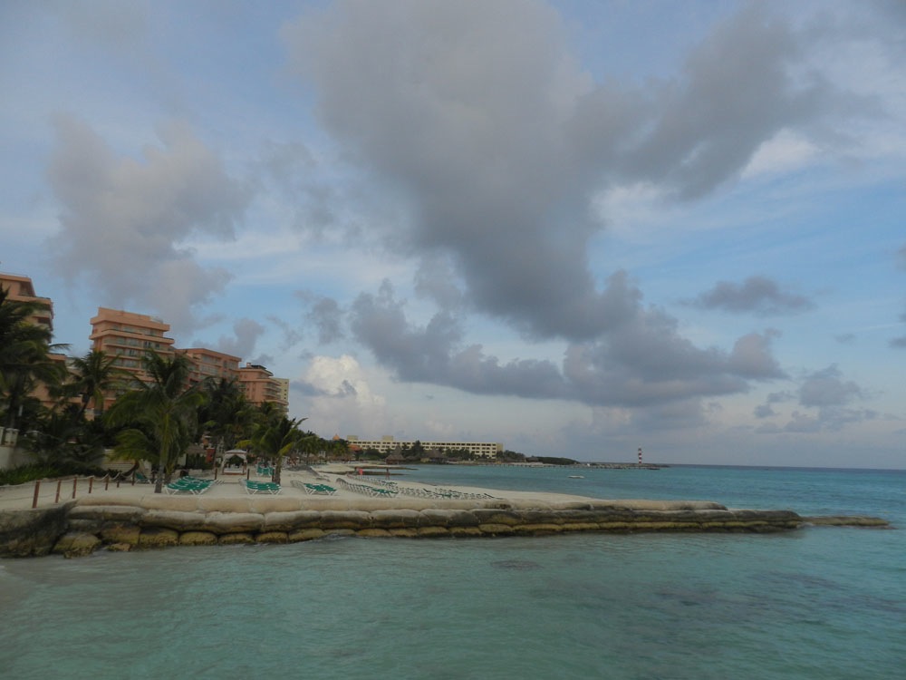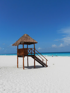 Une petite baignade, eh hop nous partons faire le guet sur le bord de la route pour prendre un collectivos qui nous mènera jusqu'à Playa Del Carmen... Nous nous apercevons rapidement que les plages ne sont encore pas bondées et la réceptionniste de l'hostal nous explique que la saison débute réellement dans une semaine. Tant mieux, on arrive pile poile avant la flambée des tarifs! Ici, rien de transcendant, la plage pue l'algue, le bord de mer est habité par de grands complexes hôteliers. Nous ne nous y plaisons pas, ajoutons par dessus le fait que Ju s'est pris le chou avec le monsieur de l'hostal qui voulait garder nos passeports au cas où on lui piquerait sa paire de draps...Bref, première heure, on saute dans un collectivos pour......... CANCUN!