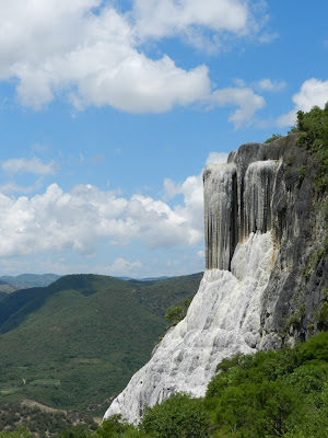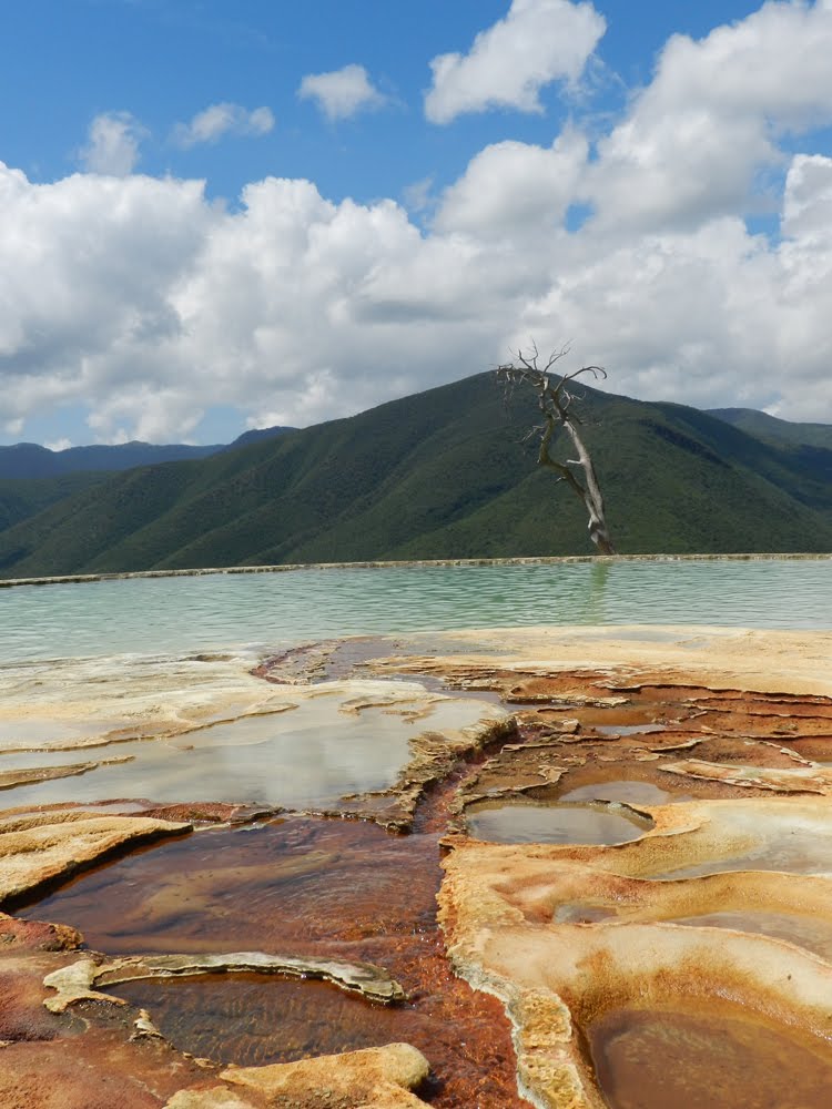 Le lendemain matin, afin d'éliminer le chorizo de la veille ;-), nous sommes partis faire une petite virée à Hierve el Agua. À 2 heures de route, surplombant les montagnes, Hierve el Agua était auparavant une source d'eau qui s'est pétrifiée avec le temps, nous offrant des panoramas et des couleurs assez incroyables! Ju est totalement tombé sous le charme du lieu.
