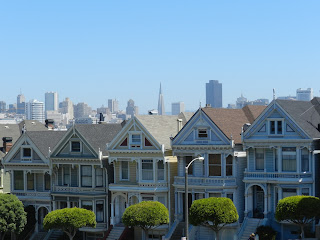 Nous arrivons donc aux alentours de 5h30 du matin à San Francisco. Nous patientons dans la gare routière jusqu'à ce que l'aube se lève et partons à l'assaut de la ville... Frisco, Frisco, c'est plutôt "frisquet" qu'ils auraient du l'appeler, en effet, un petit vent glacial balaye toute l'année les trottoirs... Je ressors ma doudoune enfouie depuis l'Equateur au fond de mon sac tout en chambrant mon chéri qui a renvoyé la sienne depuis belle lurette pensant qu'il n'en aurait plus besoin :-P... Nous restons 4 jours / 3 nuits dans la baie. Nous découvrons dans un premier temps Chinatown: une intrusion au cœur de l'Asie. On s'y croirait! Il faut savoir que 30% de la population de SF est asiatique, ça fait du monde!!! Chinatown est un peu moins cher que le reste de la ville, Ju s'offre donc une session chez le coiffeur et ressort avec la houppette à Tintin... 5US$ la coupe aux Etats-Unis: on aurait du trouver ça louche ;-)!!!Les maisons victoriennes de SF, les montées incroyables du centre ville (¨c´est une maison bleue, accrochée à la colline...¨), le Golden Park, le fisherman, le cable car, Alcatraz... :-) Petite déception avec le Golden Bridge... 4 jours sur SF et pas une fois nous n'avons pu l'apercevoir en entier, sa tête étant entièrement perchée dans les nuages :-S (¨San Francisco s´embrume...¨) Tant pis, ça nous donnera l'occasion de repasser par là ;-)