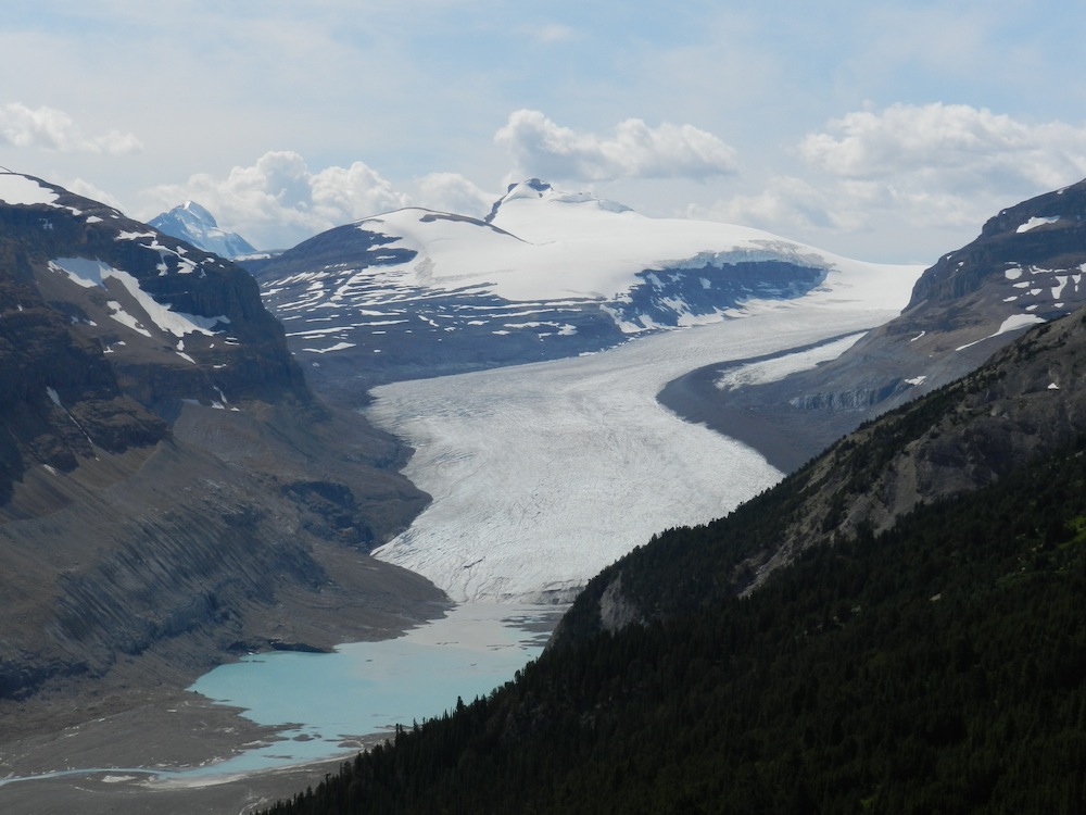 De Lake Louise nous voulons nous rendre à Jasper par la Icefields Parkway qui coupe deux parcs nationaux en deux et qui est soit disant l'une des plus belles routes au monde. Malheureusement le Greyhound n'emprunte pas cette route... Nous décidons de retenter notre chance: le lendemain matin première heure, nous partons avec notre balluchons nous poster à l'embranchement de la double voies. Après 3/4 heures infructueuses, nous décidons d'essayer directement à la Icefields Parkway, à 2 kilomètres d'ici, par la voie rapide... Nous nous rendons donc là bas, en empruntant le bas côté de la route.