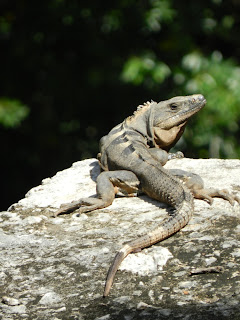 Oui, oui, ces derniers temps nous sommes devenus des archéologues en herbe sur les traces des Mayas ;-) Arrivés sur place, les cars de touristes ont envahi le parking et on se retrouve dans le flux des groupes qui se suivent à la queue leu leu, le numéro du groupe placardé sur la poitrine. Les forteresses, le soleil, la mer bleue turquoise: ils avaient la belle vie les mayas quand même ;-)