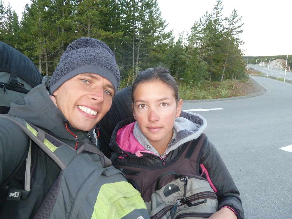 Une journée sur Whitehorse et nous nous engageons le surlendemain sur la route de " la ruée vers l'or": Dawson City! En cette fin de voyage nous décidons d'opter pour l'autostop. Le matin dés l'aube, après avoir fait quelques kilomètres à pieds pour se placer à un endroit stratégique, nous agitons notre petite pancarte "Dawson City" le sourire aux lèvres! (eh oui, il fait être vendeur!)