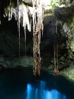 Nous rejoignons dans la journée Merida, une ville coloniale du Yucatán. Après avoir passé une journée dans les petits marchés, nous nous rendons le lendemain matin pour Cuzamal, un petit village à une 40aine de kilomètres. Une fois sur place on saute dans un "touk-touk" pour les cenotes. Alors que les touks-touks de locaux tournent à droite, le notre continue tout droit... Ju demande au monsieur pourquoi? il nous explique qu'à droite c'est pour les locaux, que tout droit c'est pour les touristes mais qu'au final on voit la même chose. "Eh bien si c'est la même chose on tourne à droite..." (Ju a du insister mais on y est arrivés!)